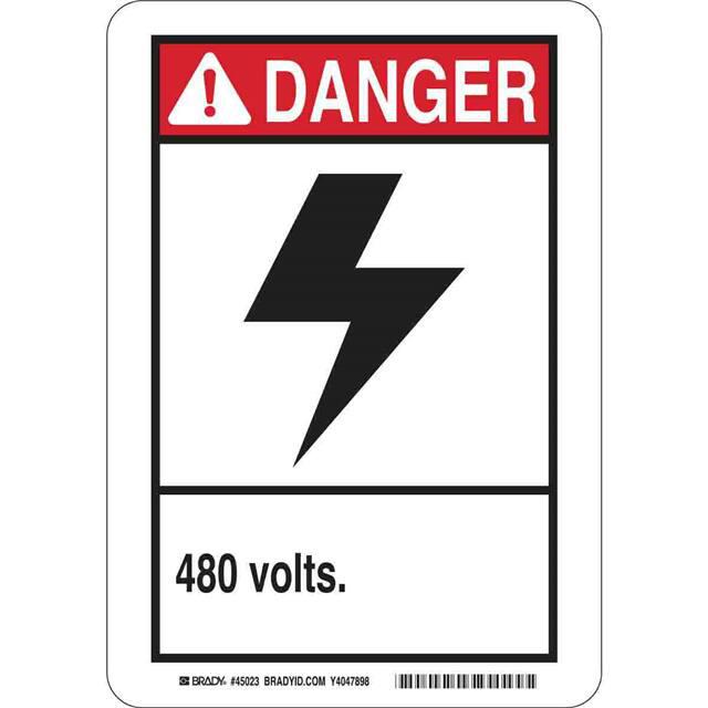 This is manufactured by Brady Corporation. The manufacturer part number is 49011. Label with a size of 10.00" l x 7.00" w (254.0mm x 177.8mm). The product is rohs3 compliant. It is assigned with possible HTSUS value of 8310.00.0000. It is shipped in bulk. It has a classic black and red legend, white background colour. The product brady®, is a highly preferred choice for users. The product is made from highly stable and reliable aluminum. In addition, it is reach unaffected. Its typical moisture sensitivity level is not applicable. A bespoke label is a danger. 480 volts label. The product is suitable for use with danger. It has a long 4 weeks standard lead time. The product is designated with the ear99 code number