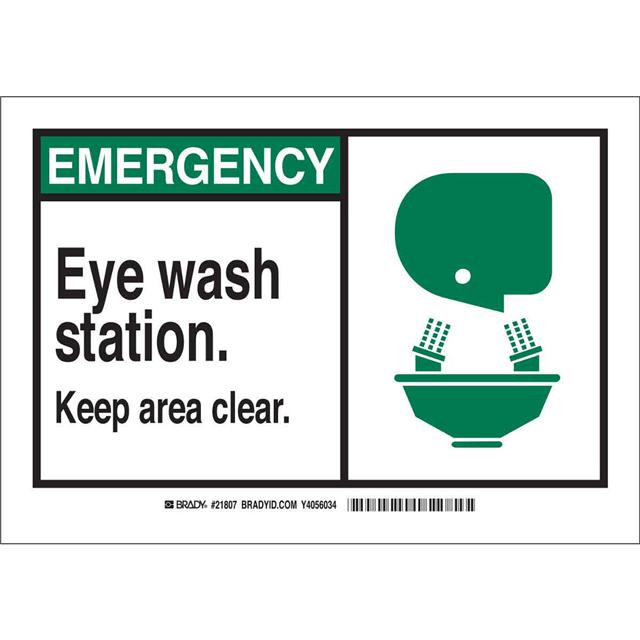 This is manufactured by Brady Corporation. The manufacturer part number is 49854. Label with a size of 5.00" l x 3.50" w (127.0mm x 88.9mm). The product is rohs3 compliant. It is assigned with possible HTSUS value of 3926.90.9985. It is shipped in bulk. It has a classic black and green legend, white background colour. The product brady®, is a highly preferred choice for users. The product is made from highly stable and reliable polyester. In addition, it is reach unaffected. Its typical moisture sensitivity level is not applicable. A bespoke label is a emergency. eye was station. keep area clear. label. The product is suitable for use with emergency. It has a long 4 weeks standard lead time. The product is designated with the ear99 code number