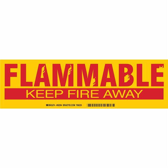 This is manufactured by Brady Corporation. The manufacturer part number is 60294. Label with a size of 12.00" l x 3.50" w (304.8mm x 88.9mm). The product is not applicable. It is assigned with possible HTSUS value of 3926.90.9985. It is shipped in bulk. It has a classic red legend, yellow background colour. The product brady®, is a highly preferred choice for users. The product is made from highly stable and reliable polyester. In addition, it is reach unaffected. Its typical moisture sensitivity level is not applicable. A bespoke label is a flammable. keep fire away label. The product is suitable for use with fire. It has a long 4 weeks standard lead time. The product is designated with the ear99 code number