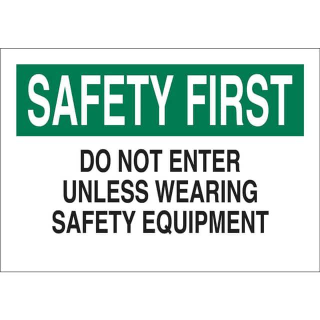 This is manufactured by Brady Corporation. The manufacturer part number is 69099. Label with a size of 14.00" l x 10.00" w (355.6mm x 254.0mm). The product is rohs3 compliant. It is assigned with possible HTSUS value of 3926.90.9985. It is shipped in bulk. It has a classic black and green legend, white background colour. The product brady®, is a highly preferred choice for users. The product is made from highly stable and reliable fiberglass. In addition, it is reach unaffected. Its typical moisture sensitivity level is not applicable. A bespoke label is a safety first. do not enter unless wearing safety equipment label. The product is suitable for use with warning. It has a long 4 weeks standard lead time. The product is designated with the ear99 code number