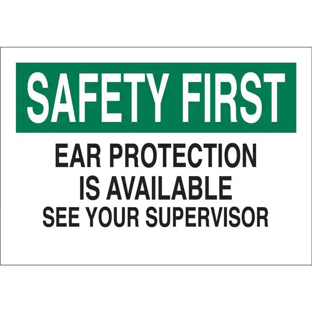 This is manufactured by Brady Corporation. The manufacturer part number is 69182. Label with a size of 14.00" l x 10.00" w (355.6mm x 254.0mm). The product is rohs3 compliant. It is assigned with possible HTSUS value of 3926.90.9985. It is shipped in bulk. It has a classic black and green legend, white background colour. The product brady®, is a highly preferred choice for users. The product is made from highly stable and reliable fiberglass. In addition, it is reach unaffected. Its typical moisture sensitivity level is not applicable. A bespoke label is a safety first. ear protection is available see your supervisor label. The product is suitable for use with safety. It has a long 4 weeks standard lead time. The product is designated with the ear99 code number