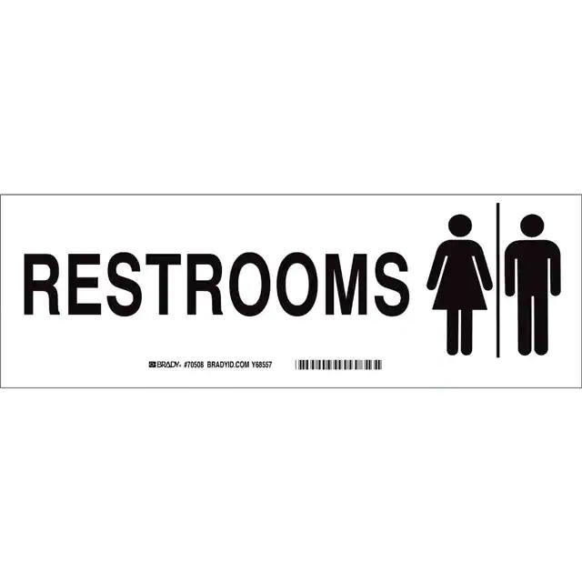 This is manufactured by Brady Corporation. The manufacturer part number is 70508. Label with a size of 12.00" l x 4.00" w (304.8mm x 101.6mm). The product is rohs3 compliant. It is assigned with possible HTSUS value of 3926.90.9985. It is shipped in bulk. It has a classic black legend, white background colour. The product brady®, is a highly preferred choice for users. The product is made from highly stable and reliable fiberglass. In addition, it is reach unaffected. Its typical moisture sensitivity level is not applicable. A bespoke label is a restrooms label. The product is suitable for use with notice. It has a long 4 weeks standard lead time. The product is designated with the ear99 code number
