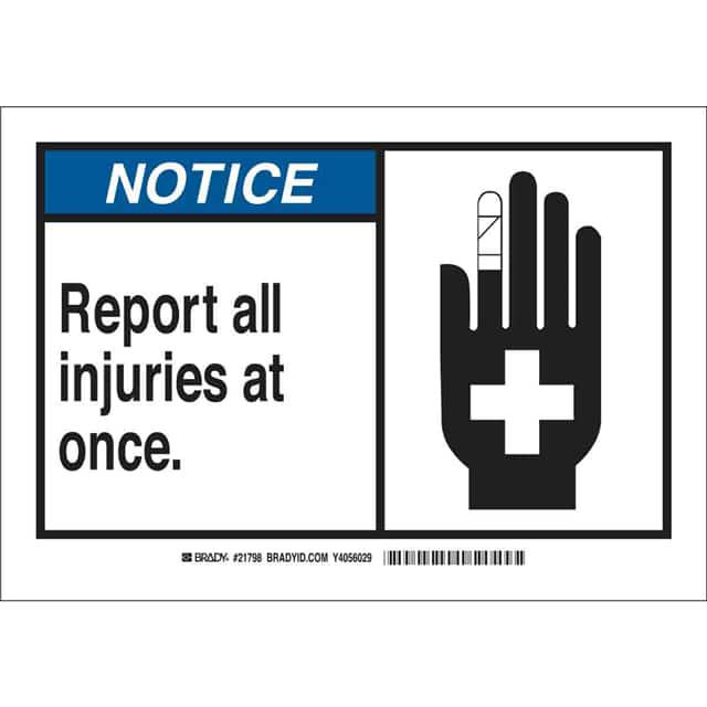 This is manufactured by Brady Corporation. The manufacturer part number is 83751. Label with a size of 10.00" l x 7.00" w (254.0mm x 177.8mm). The product is rohs3 compliant. It is assigned with possible HTSUS value of 3926.90.9985. It is shipped in bulk. It has a classic black and blue legend, white background colour. The product brady®, is a highly preferred choice for users. The product is made from highly stable and reliable polyester. In addition, it is reach unaffected. Its typical moisture sensitivity level is not applicable. A bespoke label is a notice. report all injuries at once label. The product is suitable for use with notice. It has a long 4 weeks standard lead time. The product is designated with the ear99 code number