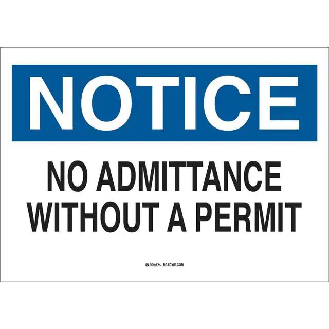 This is manufactured by Brady Corporation. The manufacturer part number is 84143. Label with a size of 10.00" l x 7.00" w (254.0mm x 177.8mm). The product is rohs3 compliant. It is assigned with possible HTSUS value of 3926.90.9985. It is shipped in bulk. It has a classic black and blue legend, white background colour. The product brady®, is a highly preferred choice for users. The product is made from highly stable and reliable polyester. In addition, it is reach unaffected. Its typical moisture sensitivity level is not applicable. A bespoke label is a notice. no admittance without a permit label. The product is suitable for use with notice. It has a long 4 weeks standard lead time. The product is designated with the ear99 code number