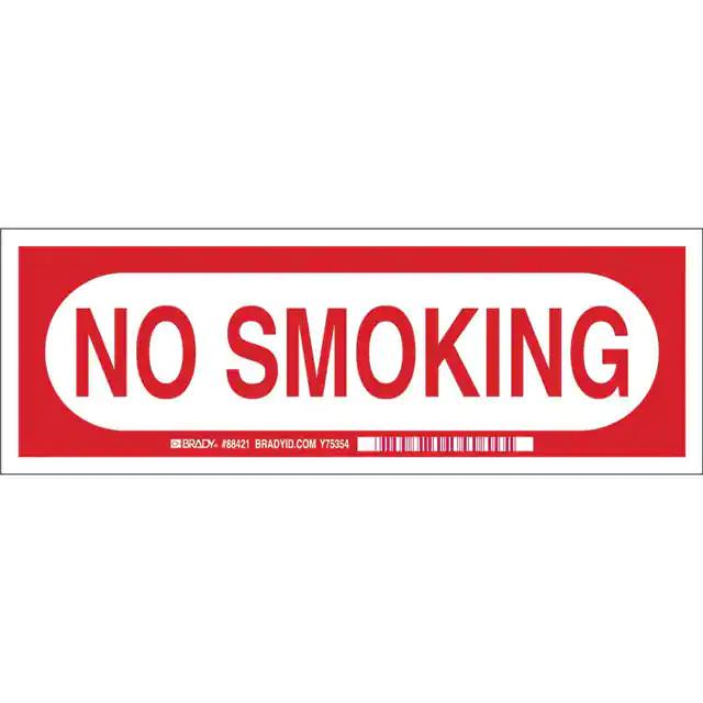 This is manufactured by Brady Corporation. The manufacturer part number is 88421. Label with a size of 10.00" l x 3.50" w (254.0mm x 88.9mm). The product is rohs3 compliant. It is assigned with possible HTSUS value of 3926.90.9985. It is shipped in bulk. It has a classic red legend, white background colour. The product brady®, is a highly preferred choice for users. The product is made from highly stable and reliable polyester. In addition, it is reach unaffected. Its typical moisture sensitivity level is not applicable. A bespoke label is a no smoking label. The product is suitable for use with warning. It has a long 4 weeks standard lead time. The product is designated with the ear99 code number