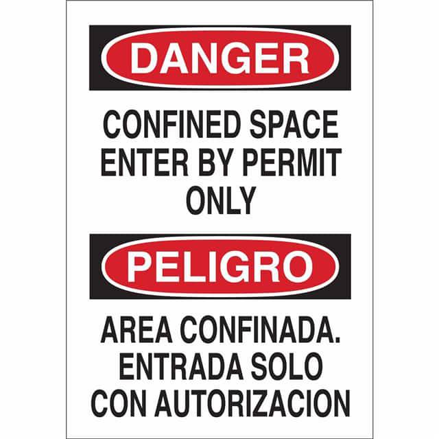 This is manufactured by Brady Corporation. The manufacturer part number is 90803. Label with a size of 14.00" l x 10.00" w (355.6mm x 254.0mm). The product is rohs3 compliant. It is assigned with possible HTSUS value of 3926.90.9985. It is shipped in bulk. It has a classic black and red legend, white background colour. The product brady®, is a highly preferred choice for users. The product is made from highly stable and reliable polyester. In addition, it is reach unaffected. Its typical moisture sensitivity level is not applicable. A bespoke label is a danger/peligro. confined space enter by permit only/area confinada. entrada solo con autorizacion label. The product is suitable for use with danger. It has a long 4 weeks standard lead time. The product is designated with the ear99 code number
