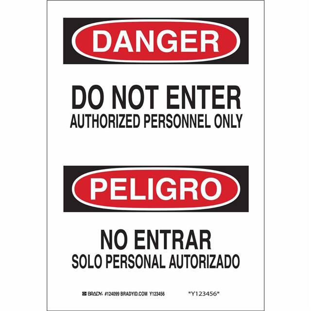 This is manufactured by Brady Corporation. The manufacturer part number is 90810. Label with a size of 14.00" l x 10.00" w (355.6mm x 254.0mm). The product is rohs3 compliant. It is assigned with possible HTSUS value of 3926.90.9985. It is shipped in bulk. It has a classic black and red legend, white background colour. The product brady®, is a highly preferred choice for users. The product is made from highly stable and reliable polyester. In addition, it is reach unaffected. Its typical moisture sensitivity level is not applicable. A bespoke label is a danger/peligro. do not enter authorized personnel only/no entrar solo personal autorizado label. The product is suitable for use with danger. It has a long 4 weeks standard lead time. The product is designated with the ear99 code number