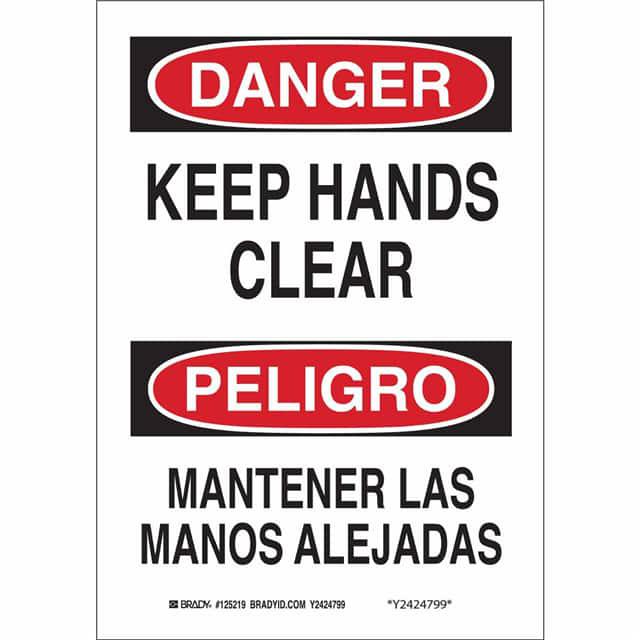This is manufactured by Brady Corporation. The manufacturer part number is 90819. Label with a size of 14.00" l x 10.00" w (355.6mm x 254.0mm). The product is rohs3 compliant. It is assigned with possible HTSUS value of 3926.90.9985. It is shipped in bulk. It has a classic black and red legend, white background colour. The product brady®, is a highly preferred choice for users. The product is made from highly stable and reliable polyester. In addition, it is reach unaffected. Its typical moisture sensitivity level is not applicable. A bespoke label is a danger/peligro. keep hands clear/mantener las manos alejadas label. The product is suitable for use with danger. It has a long 4 weeks standard lead time. The product is designated with the ear99 code number