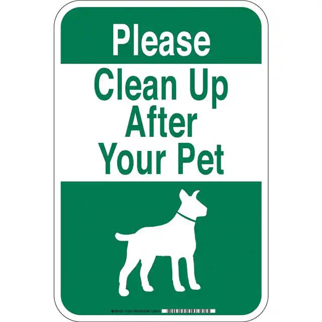 This is manufactured by Brady Corporation. The manufacturer part number is 115214. Label with a size of 18.00" l x 12.00" w (457.2mm x 304.8mm). The product is rohs3 compliant. It is assigned with possible HTSUS value of 8310.00.0000. It is shipped in bulk. It has a classic green legend, white background colour. The product brady®, is a highly preferred choice for users. The product is made from highly stable and reliable aluminum. In addition, it is reach unaffected. Its typical moisture sensitivity level is not applicable. A bespoke label is a please. clean up after your pet label. The product is suitable for use with warning. It has a long 4 weeks standard lead time. The product is designated with the ear99 code number