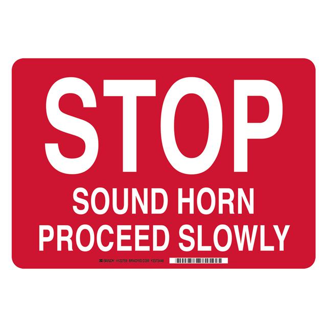This is manufactured by Brady Corporation. The manufacturer part number is 122759. Label with a size of 14.00" l x 10.00" w (355.6mm x 254.0mm). The product is rohs3 compliant. It is assigned with possible HTSUS value of 3926.90.9985. It is shipped in bulk. It has a classic white legend, red background colour. The product brady®, is a highly preferred choice for users. The product is made from highly stable and reliable fiberglass. In addition, it is reach unaffected. Its typical moisture sensitivity level is not applicable. A bespoke label is a stop sound horn proceed slowly label. The product is suitable for use with warning. It has a long 4 weeks standard lead time. The product is designated with the ear99 code number