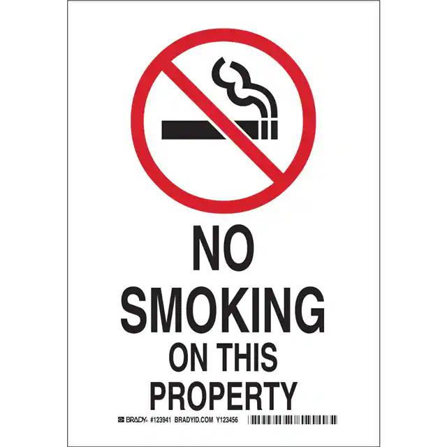 This is manufactured by Brady Corporation. The manufacturer part number is 123942. Label with a size of 14.00" l x 10.00" w (355.6mm x 254.0mm). The product is rohs3 compliant. It is assigned with possible HTSUS value of 8310.00.0000. It is shipped in bulk. It has a classic black and red legend, white background colour. The product brady®, is a highly preferred choice for users. The product is made from highly stable and reliable aluminum. In addition, it is reach unaffected. Its typical moisture sensitivity level is not applicable. A bespoke label is a no smoking on this property label. It has a long 4 weeks standard lead time. The product is designated with the ear99 code number