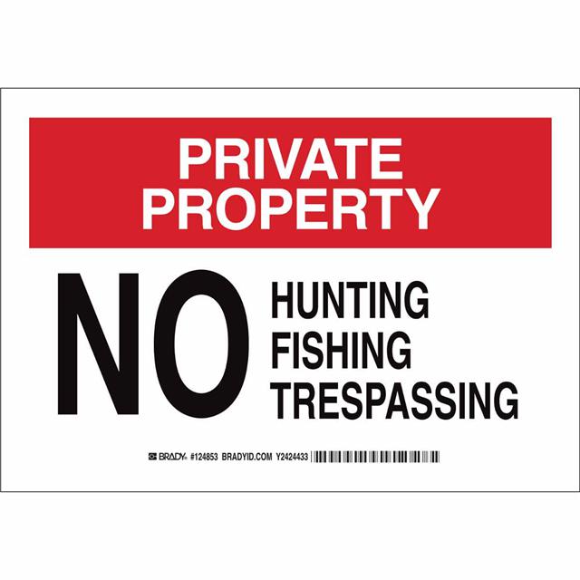 This is manufactured by Brady Corporation. The manufacturer part number is 124854. Label with a size of 14.00" l x 10.00" w (355.6mm x 254.0mm). The product is rohs3 compliant. It is assigned with possible HTSUS value of 8310.00.0000. It is shipped in bulk. It has a classic black and red legend, white background colour. The product brady®, is a highly preferred choice for users. The product is made from highly stable and reliable aluminum. In addition, it is reach unaffected. Its typical moisture sensitivity level is not applicable. A bespoke label is a no hunting fishing trespassing label. It has a long 4 weeks standard lead time. The product is designated with the ear99 code number