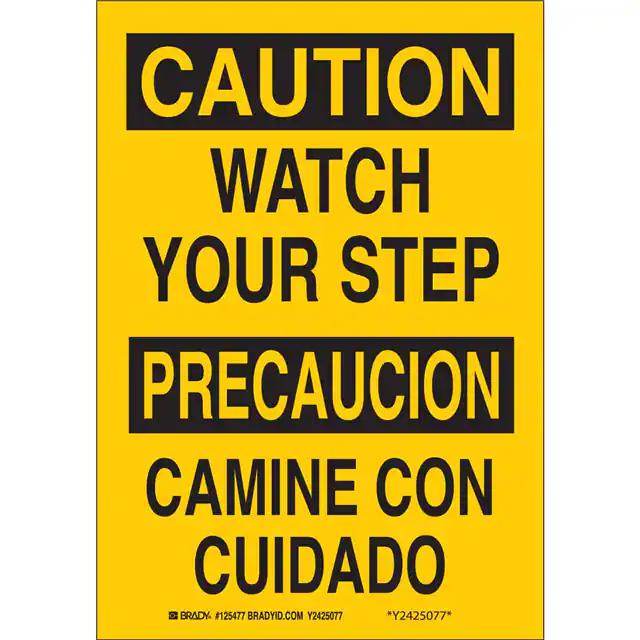 This is manufactured by Brady Corporation. The manufacturer part number is 125478. Label with a size of 14.00" l x 10.00" w (355.6mm x 254.0mm). The product is not applicable. It is assigned with possible HTSUS value of 8310.00.0000. It is shipped in bulk. It has a classic black legend, yellow background colour. The product brady®, is a highly preferred choice for users. The product is made from highly stable and reliable aluminum. In addition, it is reach affected. Its typical moisture sensitivity level is not applicable. A bespoke label is a caution/precaucionwatch your step/camine con cuidado label. The product is suitable for use with warning. It has a long 4 weeks standard lead time. The product is designated with the ear99 code number