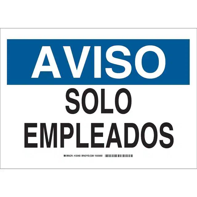 This is manufactured by Brady Corporation. The manufacturer part number is 125490. Label with a size of 14.00" l x 10.00" w (355.6mm x 254.0mm). The product is rohs3 compliant. It is assigned with possible HTSUS value of 8310.00.0000. It is shipped in bulk. It has a classic black and blue legend, white background colour. The product brady®, is a highly preferred choice for users. The product is made from highly stable and reliable aluminum. In addition, it is reach unaffected. Its typical moisture sensitivity level is not applicable. A bespoke label is a aviso. solo empleados label. The product is suitable for use with warning. It has a long 4 weeks standard lead time. The product is designated with the ear99 code number