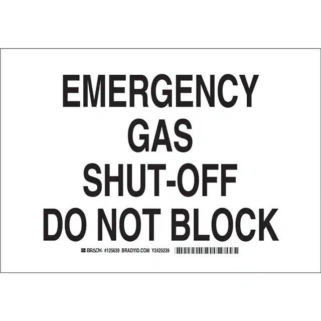 This is manufactured by Brady Corporation. The manufacturer part number is 125642. Label with a size of 14.00" l x 10.00" w (355.6mm x 254.0mm). The product is rohs3 compliant. It is assigned with possible HTSUS value of 3926.90.9985. It is shipped in bulk. It has a classic black legend, white background colour. The product brady®, is a highly preferred choice for users. The product is made from highly stable and reliable polyester. In addition, it is reach unaffected. Its typical moisture sensitivity level is not applicable. A bespoke label is a emergency gas shut-off do not block label. It has a long 4 weeks standard lead time. The product is designated with the ear99 code number