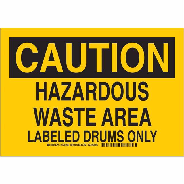 This is manufactured by Brady Corporation. The manufacturer part number is 125997. Label with a size of 14.00" l x 10.00" w (355.6mm x 254.0mm). The product is not applicable. It is assigned with possible HTSUS value of 8310.00.0000. It is shipped in bulk. It has a classic black legend, yellow background colour. The product brady®, is a highly preferred choice for users. The product is made from highly stable and reliable aluminum. In addition, it is reach affected. Its typical moisture sensitivity level is not applicable. A bespoke label is a caution. hazardous waste area labeled drums only label. It has a long 4 weeks standard lead time. The product is designated with the ear99 code number