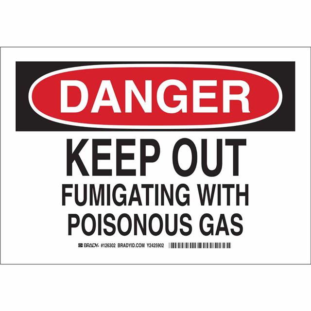 This is manufactured by Brady Corporation. The manufacturer part number is 126305. Label with a size of 14.00" l x 10.00" w (355.6mm x 254.0mm). The product is rohs3 compliant. It is assigned with possible HTSUS value of 3926.90.9985. It is shipped in bulk. It has a classic black and red legend, white background colour. The product brady®, is a highly preferred choice for users. The product is made from highly stable and reliable polyester. In addition, it is reach unaffected. Its typical moisture sensitivity level is not applicable. A bespoke label is a danger. keep out fumigating with poisonous gas label. The product is suitable for use with danger. It has a long 4 weeks standard lead time. The product is designated with the ear99 code number