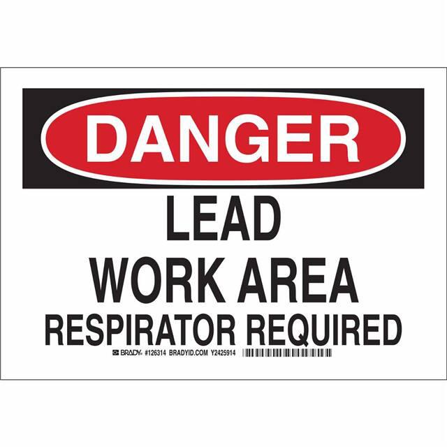 This is manufactured by Brady Corporation. The manufacturer part number is 126317. Label with a size of 14.00" l x 10.00" w (355.6mm x 254.0mm). The product is rohs3 compliant. It is assigned with possible HTSUS value of 3926.90.9985. It is shipped in bulk. It has a classic black and red legend, white background colour. The product brady®, is a highly preferred choice for users. The product is made from highly stable and reliable polyester. In addition, it is reach unaffected. Its typical moisture sensitivity level is not applicable. A bespoke label is a danger. lead work area respirator required label. The product is suitable for use with warning. It has a long 4 weeks standard lead time. The product is designated with the ear99 code number