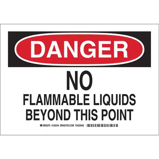 This is manufactured by Brady Corporation. The manufacturer part number is 126347. Label with a size of 14.00" l x 10.00" w (355.6mm x 254.0mm). The product is rohs3 compliant. It is assigned with possible HTSUS value of 3926.90.9985. It is shipped in bulk. It has a classic black and red legend, white background colour. The product brady®, is a highly preferred choice for users. The product is made from highly stable and reliable polyester. In addition, it is reach unaffected. Its typical moisture sensitivity level is not applicable. A bespoke label is a danger. no flammable liquids beyond this point label. The product is suitable for use with danger. It has a long 4 weeks standard lead time. The product is designated with the ear99 code number
