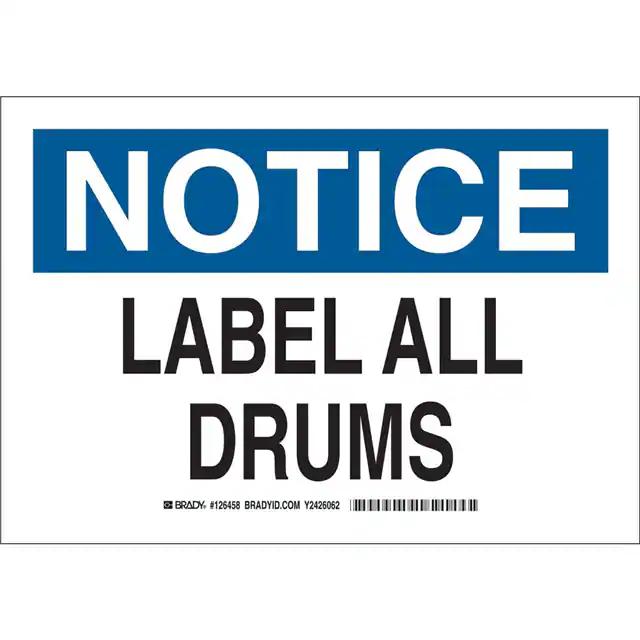 This is manufactured by Brady Corporation. The manufacturer part number is 126461. Label with a size of 14.00" l x 10.00" w (355.6mm x 254.0mm). The product is rohs3 compliant. It is assigned with possible HTSUS value of 3926.90.9985. It is shipped in bulk. It has a classic black and blue legend, white background colour. The product brady®, is a highly preferred choice for users. The product is made from highly stable and reliable polyester. In addition, it is reach unaffected. Its typical moisture sensitivity level is not applicable. A bespoke label is a notice. label all drums label. It has a long 4 weeks standard lead time. The product is designated with the ear99 code number