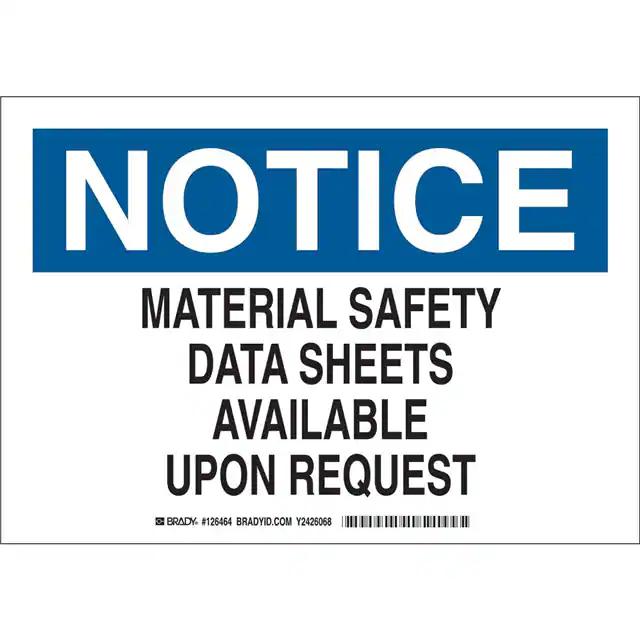 This is manufactured by Brady Corporation. The manufacturer part number is 126465. Label with a size of 14.00" l x 10.00" w (355.6mm x 254.0mm). The product is rohs3 compliant. It is assigned with possible HTSUS value of 8310.00.0000. It is shipped in bulk. It has a classic black and blue legend, white background colour. The product brady®, is a highly preferred choice for users. The product is made from highly stable and reliable aluminum. In addition, it is reach unaffected. Its typical moisture sensitivity level is not applicable. A bespoke label is a notice. material safety data sheets available upon request label. The product is suitable for use with notice. It has a long 4 weeks standard lead time. The product is designated with the ear99 code number