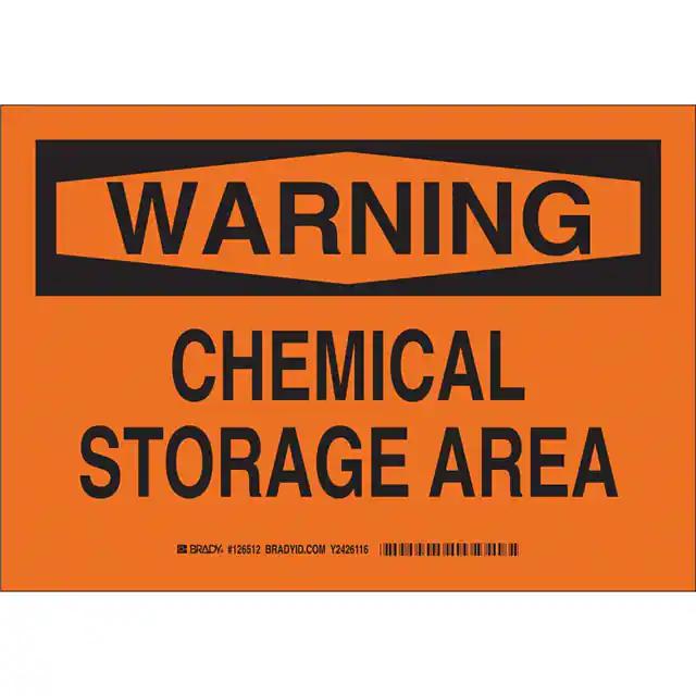This is manufactured by Brady Corporation. The manufacturer part number is 126515. Label with a size of 14.00" l x 10.00" w (355.6mm x 254.0mm). The product is not applicable. It is assigned with possible HTSUS value of 3926.90.9985. It is shipped in bulk. It has a classic black legend, orange background colour. The product brady®, is a highly preferred choice for users. The product is made from highly stable and reliable polyester. In addition, it is reach unaffected. Its typical moisture sensitivity level is not applicable. A bespoke label is a warning. chemical storage area label. The product is suitable for use with warning. It has a long 4 weeks standard lead time. The product is designated with the ear99 code number
