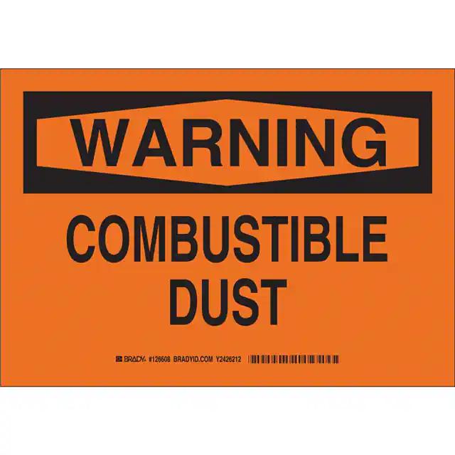 This is manufactured by Brady Corporation. The manufacturer part number is 126609. Label with a size of 14.00" l x 10.00" w (355.6mm x 254.0mm). The product is rohs3 compliant. It is assigned with possible HTSUS value of 8310.00.0000. It is shipped in bulk. It has a classic black legend, orange background colour. The product brady®, is a highly preferred choice for users. The product is made from highly stable and reliable aluminum. In addition, it is reach unaffected. Its typical moisture sensitivity level is not applicable. A bespoke label is a warning. combustible dust label. It has a long 4 weeks standard lead time. The product is designated with the ear99 code number