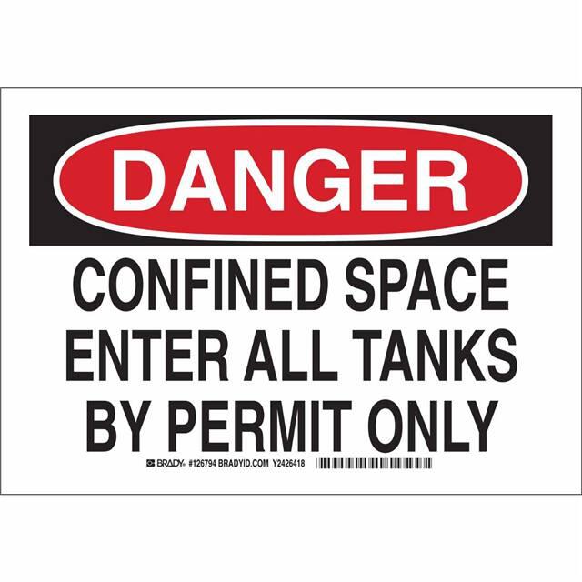 This is manufactured by Brady Corporation. The manufacturer part number is 126797. Label with a size of 14.00" l x 10.00" w (355.6mm x 254.0mm). The product is rohs3 compliant. It is assigned with possible HTSUS value of 3926.90.9985. It is shipped in bulk. It has a classic black and red legend, white background colour. The product brady®, is a highly preferred choice for users. The product is made from highly stable and reliable polyester. In addition, it is reach unaffected. Its typical moisture sensitivity level is not applicable. A bespoke label is a danger. confined space enter all tanks by permit only label. It has a long 4 weeks standard lead time. The product is designated with the ear99 code number