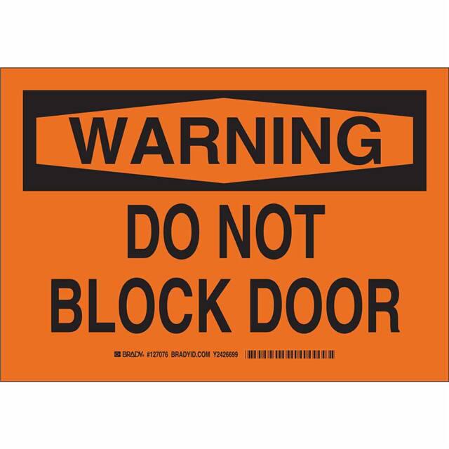 This is manufactured by Brady Corporation. The manufacturer part number is 127079. Label with a size of 14.00" l x 10.00" w (355.6mm x 254.0mm). The product is not applicable. It is assigned with possible HTSUS value of 3926.90.9985. It is shipped in bulk. It has a classic black legend, orange background colour. The product brady®, is a highly preferred choice for users. The product is made from highly stable and reliable polyester. In addition, it is reach unaffected. Its typical moisture sensitivity level is not applicable. A bespoke label is a warning. do not block door label. The product is suitable for use with warning. It has a long 4 weeks standard lead time. The product is designated with the ear99 code number