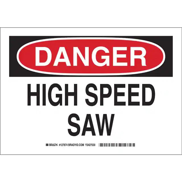 This is manufactured by Brady Corporation. The manufacturer part number is 127877. Label with a size of 14.00" l x 10.00" w (355.6mm x 254.0mm). The product is rohs3 compliant. It is assigned with possible HTSUS value of 3926.90.9985. It is shipped in bulk. It has a classic black and red legend, white background colour. The product brady®, is a highly preferred choice for users. The product is made from highly stable and reliable polyester. In addition, it is reach unaffected. Its typical moisture sensitivity level is not applicable. A bespoke label is a danger. high speed saw label. It has a long 4 weeks standard lead time. The product is designated with the ear99 code number
