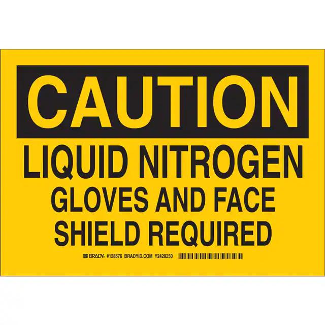 This is manufactured by Brady Corporation. The manufacturer part number is 128579. Label with a size of 14.00" l x 10.00" w (355.6mm x 254.0mm). The product is not applicable. It is assigned with possible HTSUS value of 3926.90.9985. It is shipped in bulk. It has a classic black legend, yellow background colour. The product brady®, is a highly preferred choice for users. The product is made from highly stable and reliable polyester. In addition, it is reach unaffected. Its typical moisture sensitivity level is not applicable. A bespoke label is a caution. liquid nitrogen gloves and face shield required label. The product is suitable for use with caution. It has a long 4 weeks standard lead time. The product is designated with the ear99 code number
