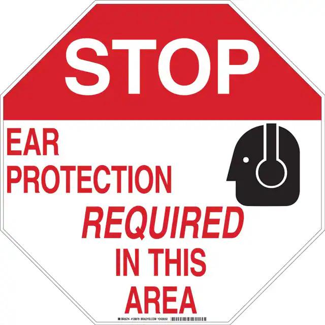 This is manufactured by Brady Corporation. The manufacturer part number is 128677. Label with a size of 18.00" l x 18.00" w (457.2mm x 457.2mm). The product is rohs3 compliant. It is assigned with possible HTSUS value of 3926.90.9985. It is shipped in bulk. It has a classic black and red legend, white background colour. The product brady®, is a highly preferred choice for users. The product is made from highly stable and reliable polyester. In addition, it is reach unaffected. Its typical moisture sensitivity level is not applicable. A bespoke label is a stop. ear protection required in this area label. The product is suitable for use with warning. It has a long 4 weeks standard lead time. The product is designated with the ear99 code number