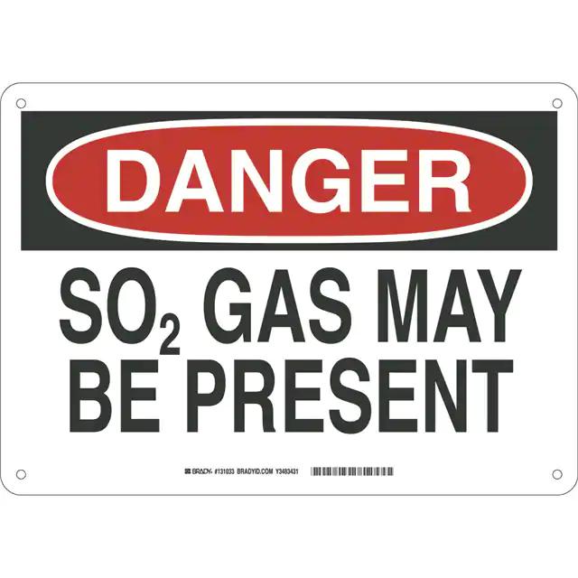 This is manufactured by Brady Corporation. The manufacturer part number is 131033. Label with a size of 14.00" l x 10.00" w (355.6mm x 254.0mm). The product is rohs3 compliant. It is assigned with possible HTSUS value of 3926.90.9985. It is shipped in bulk. It has a classic black and red legend, white background colour. The product brady®, is a highly preferred choice for users. The product is made from highly stable and reliable fiberglass. In addition, it is reach unaffected. Its typical moisture sensitivity level is not applicable. A bespoke label is a danger. s02 gas may be present label. The product is suitable for use with warning. It has a long 4 weeks standard lead time. The product is designated with the ear99 code number