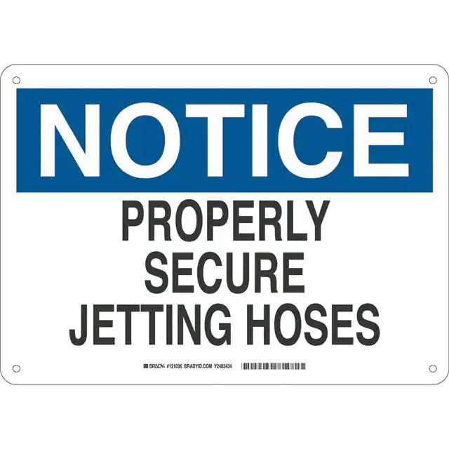 This is manufactured by Brady Corporation. The manufacturer part number is 131036. Label with a size of 14.00" l x 10.00" w (355.6mm x 254.0mm). The product is rohs3 compliant. It is assigned with possible HTSUS value of 3926.90.9985. It is shipped in bulk. It has a classic black and blue legend, white background colour. The product brady®, is a highly preferred choice for users. The product is made from highly stable and reliable fiberglass. In addition, it is reach unaffected. Its typical moisture sensitivity level is not applicable. A bespoke label is a notice. properly secure jetting hoses label. The product is suitable for use with notice. It has a long 4 weeks standard lead time. The product is designated with the ear99 code number