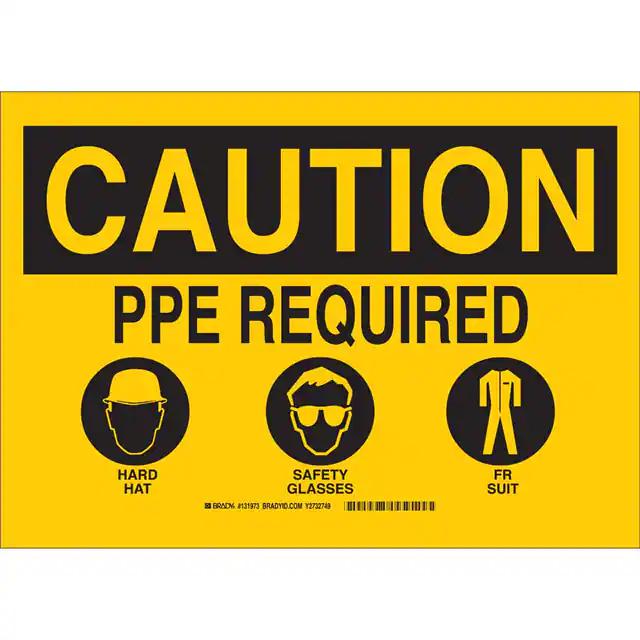 This is manufactured by Brady Corporation. The manufacturer part number is 131971. Label with a size of 14.00" l x 10.00" w (355.6mm x 254.0mm). The product is not applicable. It is assigned with possible HTSUS value of 8310.00.0000. It is shipped in bulk. It has a classic black legend, yellow background colour. The product brady®, is a highly preferred choice for users. The product is made from highly stable and reliable aluminum. In addition, it is reach affected. Its typical moisture sensitivity level is not applicable. A bespoke label is a ppe required hard hat safety glasses fr suit label. The product is suitable for use with safety. It has a long 4 weeks standard lead time. The product is designated with the ear99 code number