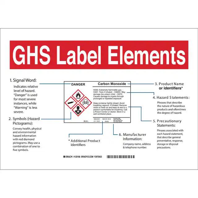 This is manufactured by Brady Corporation. The manufacturer part number is 133171. Label with a size of 14.00" l x 10.00" w (355.6mm x 254.0mm). The product is rohs3 compliant. It is assigned with possible HTSUS value of 3926.90.9985. It is shipped in bulk. It has a classic black and red legend, white background colour. The product brady®, is a highly preferred choice for users. The product is made from highly stable and reliable polyester. In addition, it is reach unaffected. Its typical moisture sensitivity level is not applicable. A bespoke label is a ghs label elements label. The product is suitable for use with notice. The product is designated with the ear99 code number