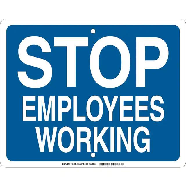 This is manufactured by Brady Corporation. The manufacturer part number is 134186. Label with a size of 15.00" l x 12.00" w (381.0mm x 304.8mm). The product is rohs3 compliant. It is assigned with possible HTSUS value of 8310.00.0000. It is shipped in bulk. It has a classic white legend, blue background colour. The product brady®, is a highly preferred choice for users. The product is made from highly stable and reliable aluminum. In addition, it is reach unaffected. Its typical moisture sensitivity level is not applicable. A bespoke label is a stop employees working label. The product is suitable for use with warning. It has a long 4 weeks standard lead time. The product is designated with the ear99 code number