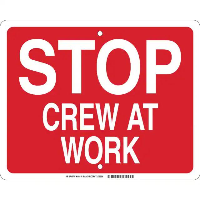 This is manufactured by Brady Corporation. The manufacturer part number is 134188. Label with a size of 15.00" l x 12.00" w (381.0mm x 304.8mm). The product is rohs3 compliant. It is assigned with possible HTSUS value of 8310.00.0000. It is shipped in bulk. It has a classic white legend, red background colour. The product brady®, is a highly preferred choice for users. The product is made from highly stable and reliable aluminum. In addition, it is reach unaffected. Its typical moisture sensitivity level is not applicable. A bespoke label is a stop crew at work label. It has a long 4 weeks standard lead time. The product is designated with the ear99 code number