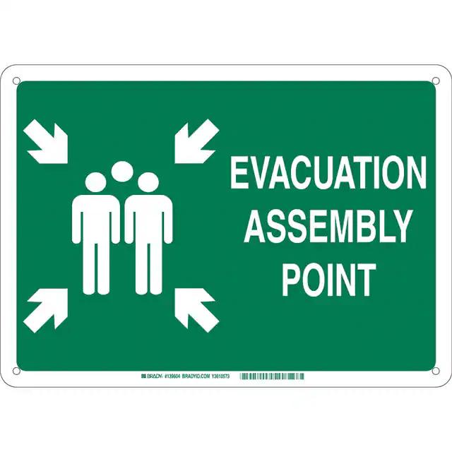 This is manufactured by Brady Corporation. The manufacturer part number is 139612. Label with a size of 24.00" l x 18.00" w (609.6mm x 457.2mm). The product is rohs3 compliant. It is assigned with possible HTSUS value of 8310.00.0000. It is shipped in bulk. It has a classic green legend, white background colour. The product brady®, is a highly preferred choice for users. The product is made from highly stable and reliable aluminum. In addition, it is reach unaffected. Its typical moisture sensitivity level is not applicable. A bespoke label is a evacuation assembly point label. It has a long 4 weeks standard lead time. The product is designated with the ear99 code number