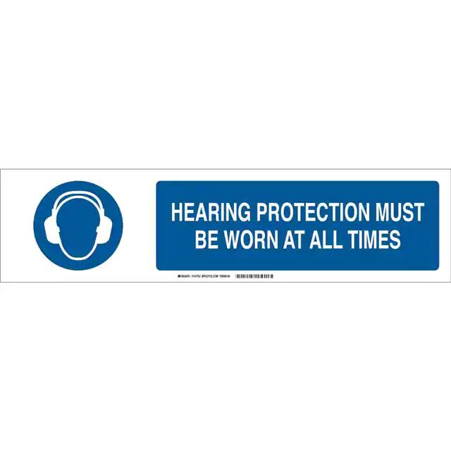 This is manufactured by Brady Corporation. The manufacturer part number is 140830. Label with a size of 23.88" l x 6.00" w (606.4mm x 152.4mm). The product is rohs3 compliant. It is assigned with possible HTSUS value of 8310.00.0000. It is shipped in bulk. It has a classic blue legend, white background colour. The product brady®, is a highly preferred choice for users. The product is made from highly stable and reliable aluminum. In addition, it is reach unaffected. Its typical moisture sensitivity level is not applicable. A bespoke label is a hearing protection must be worn at all times label. It has a long 4 weeks standard lead time. The product is designated with the ear99 code number