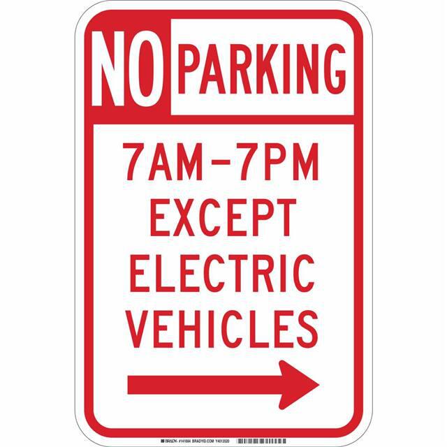 This is manufactured by Brady Corporation. The manufacturer part number is 141664. Label with a size of 18.00" l x 12.00" w (457.2mm x 304.8mm). The product is rohs3 compliant. It is assigned with possible HTSUS value of 8310.00.0000. It is shipped in bulk. It has a classic red legend, white background colour. The product brady®, is a highly preferred choice for users. The product is made from highly stable and reliable aluminum. In addition, it is reach unaffected. Its typical moisture sensitivity level is not applicable. A bespoke label is a no parking 7am-7pm except electric vehicles label. The product is suitable for use with warning. It has a long 4 weeks standard lead time. The product is designated with the ear99 code number