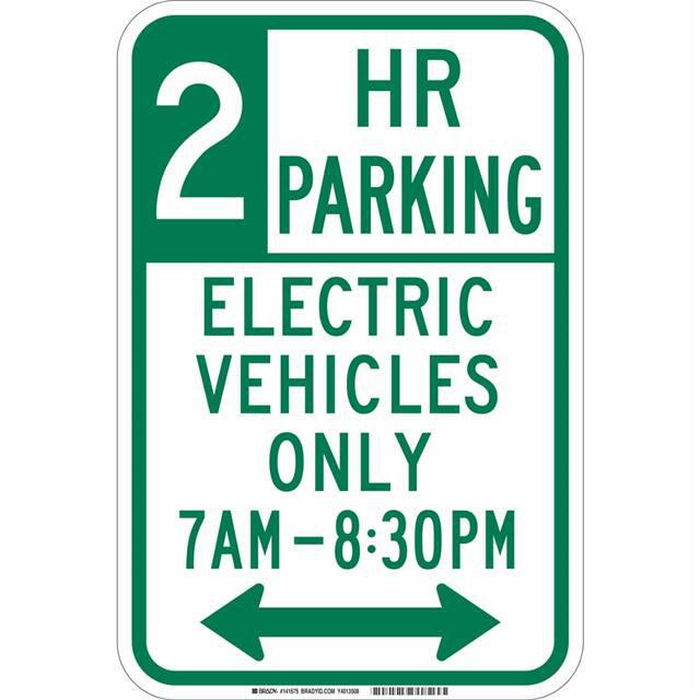 This is manufactured by Brady Corporation. The manufacturer part number is 141675. Label with a size of 18.00" l x 12.00" w (457.2mm x 304.8mm). The product is rohs3 compliant. It is assigned with possible HTSUS value of 8310.00.0000. It is shipped in bulk. It has a classic green legend, white background colour. The product brady®, is a highly preferred choice for users. The product is made from highly stable and reliable aluminum. In addition, it is reach unaffected. Its typical moisture sensitivity level is not applicable. A bespoke label is a 2 hr parking electric vehicles only 7 am-8:30 pm label. The product is suitable for use with voltage. It has a long 4 weeks standard lead time. The product is designated with the ear99 code number