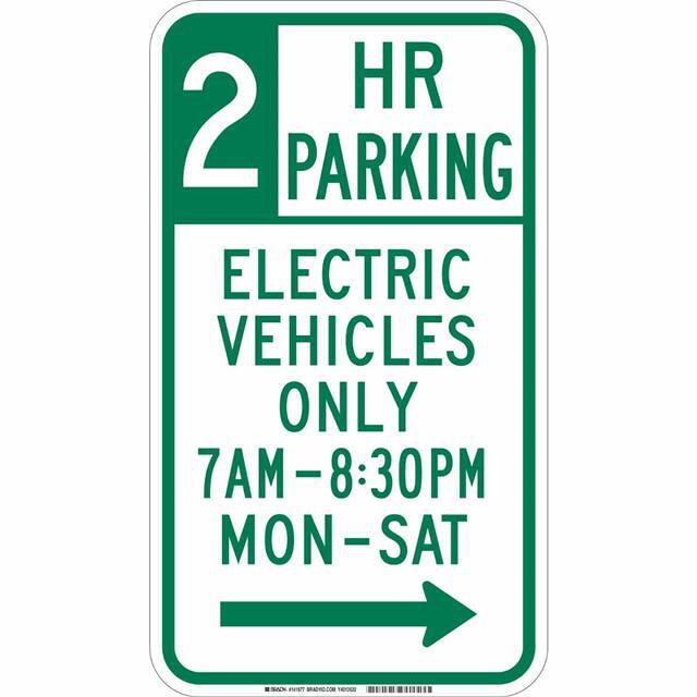 This is manufactured by Brady Corporation. The manufacturer part number is 141677. Label with a size of 18.00" l x 12.00" w (457.2mm x 304.8mm). The product is rohs3 compliant. It is assigned with possible HTSUS value of 8310.00.0000. It is shipped in bulk. It has a classic green legend, white background colour. The product brady®, is a highly preferred choice for users. The product is made from highly stable and reliable aluminum. In addition, it is reach unaffected. Its typical moisture sensitivity level is not applicable. A bespoke label is a 2 hr parking electric vehicles only 7 am- 8:30 pm mon-sat label. The product is suitable for use with voltage. It has a long 4 weeks standard lead time. The product is designated with the ear99 code number
