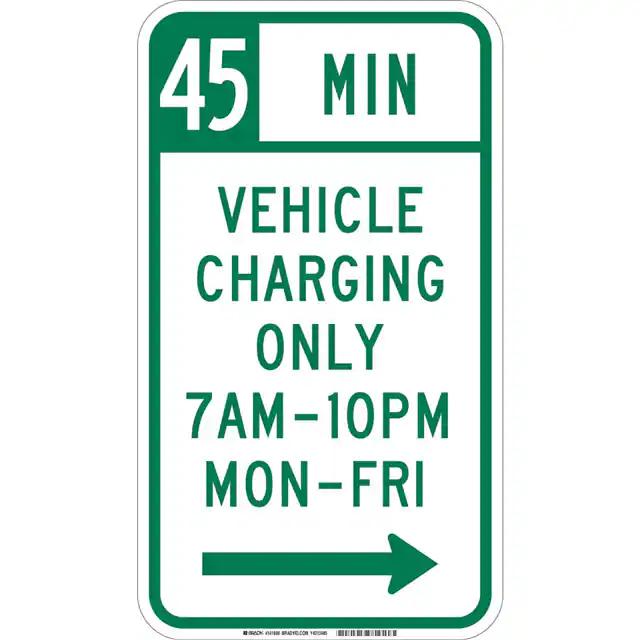 This is manufactured by Brady Corporation. The manufacturer part number is 141688. Label with a size of 18.00" l x 12.00" w (457.2mm x 304.8mm). The product is rohs3 compliant. It is assigned with possible HTSUS value of 8310.00.0000. It is shipped in bulk. It has a classic green legend, white background colour. The product brady®, is a highly preferred choice for users. The product is made from highly stable and reliable aluminum. In addition, it is reach unaffected. Its typical moisture sensitivity level is not applicable. A bespoke label is a 45 min vehicle charging only 7 am-10 pm mon-fri label. The product is suitable for use with warning. It has a long 4 weeks standard lead time. The product is designated with the ear99 code number