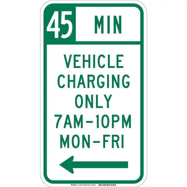 This is manufactured by Brady Corporation. The manufacturer part number is 141690. Label with a size of 18.00" l x 12.00" w (457.2mm x 304.8mm). The product is rohs3 compliant. It is assigned with possible HTSUS value of 8310.00.0000. It is shipped in bulk. It has a classic green legend, white background colour. The product brady®, is a highly preferred choice for users. The product is made from highly stable and reliable aluminum. In addition, it is reach unaffected. Its typical moisture sensitivity level is not applicable. A bespoke label is a 45 min vehicle charging only 7 am-10 pm mon-fri label. It has a long 4 weeks standard lead time. The product is designated with the ear99 code number
