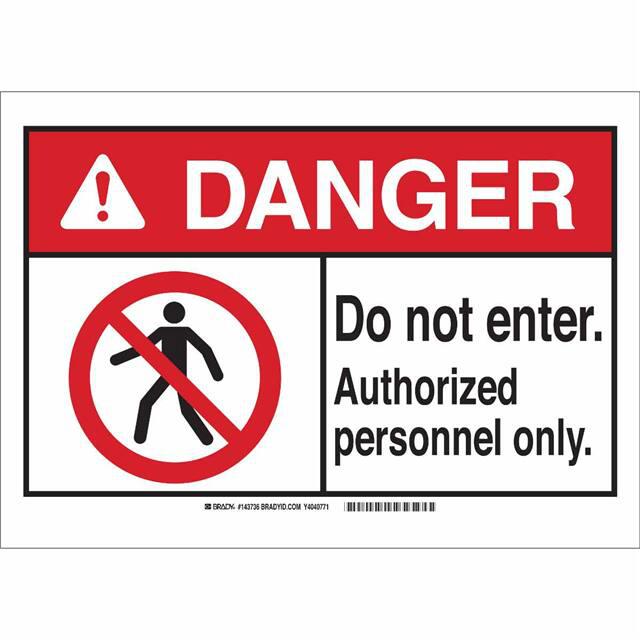 This is manufactured by Brady Corporation. The manufacturer part number is 143736. Label with a size of 14.00" l x 10.00" w (355.6mm x 254.0mm). The product is rohs3 compliant. It is assigned with possible HTSUS value of 3926.90.9985. It is shipped in bulk. It has a classic black and red legend, white background colour. The product brady®, is a highly preferred choice for users. The product is made from highly stable and reliable fiberglass. In addition, it is reach unaffected. Its typical moisture sensitivity level is not applicable. A bespoke label is a danger. do not enter. authorized personnel only label. The product is suitable for use with warning. It has a long 4 weeks standard lead time. The product is designated with the ear99 code number