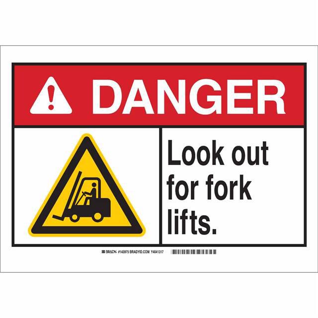 This is manufactured by Brady Corporation. The manufacturer part number is 143975. Label with a size of 14.00" l x 10.00" w (355.6mm x 254.0mm). The product is rohs3 compliant. It is assigned with possible HTSUS value of 8310.00.0000. It is shipped in bulk. It has a classic black, red and yellow legend, white background colour. The product brady®, is a highly preferred choice for users. The product is made from highly stable and reliable aluminum. In addition, it is reach unaffected. Its typical moisture sensitivity level is not applicable. A bespoke label is a danger. look out for fork lifts label. It has a long 4 weeks standard lead time. The product is designated with the ear99 code number