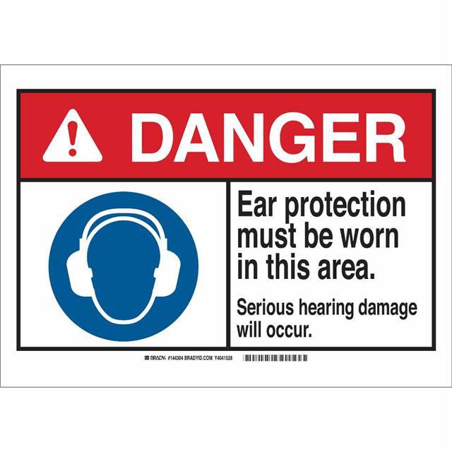 This is manufactured by Brady Corporation. The manufacturer part number is 144304. Label with a size of 14.00" l x 10.00" w (355.6mm x 254.0mm). The product is rohs3 compliant. It is assigned with possible HTSUS value of 3926.90.9985. It is shipped in bulk. It has a classic black, blue and red legend, white background colour. The product brady®, is a highly preferred choice for users. The product is made from highly stable and reliable fiberglass. In addition, it is reach unaffected. Its typical moisture sensitivity level is not applicable. A bespoke label is a danger. ear protection must be worn in this area. serious hearing damage will occur label. The product is suitable for use with danger. It has a long 4 weeks standard lead time. The product is designated with the ear99 code number