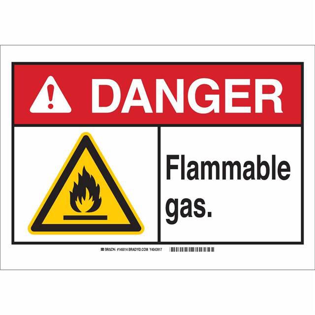 This is manufactured by Brady Corporation. The manufacturer part number is 145015. Label with a size of 14.00" l x 10.00" w (355.6mm x 254.0mm). The product is rohs3 compliant. It is assigned with possible HTSUS value of 3926.90.9985. It is shipped in bulk. It has a classic black and red legend, white background colour. The product brady®, is a highly preferred choice for users. The product is made from highly stable and reliable fiberglass. In addition, it is reach unaffected. Its typical moisture sensitivity level is not applicable. A bespoke label is a danger. flammable gas. label. The product is suitable for use with notice. It has a long 4 weeks standard lead time. The product is designated with the ear99 code number