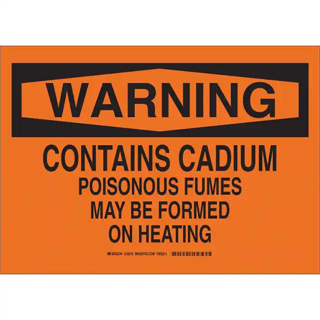 This is manufactured by Brady Corporation. The manufacturer part number is 16015. Label with a size of 14.00" l x 10.00" w (355.6mm x 254.0mm). The product is not applicable. It is assigned with possible HTSUS value of 3926.90.9985. It is shipped in bulk. It has a classic black legend, orange background colour. The product brady®, is a highly preferred choice for users. The product is made from highly stable and reliable polyester. In addition, it is reach unaffected. Its typical moisture sensitivity level is not applicable. A bespoke label is a warning. contains cadmium poisonous fumes may be formed on heating label. The product is suitable for use with warning. It has a long 4 weeks standard lead time. The product is designated with the ear99 code number